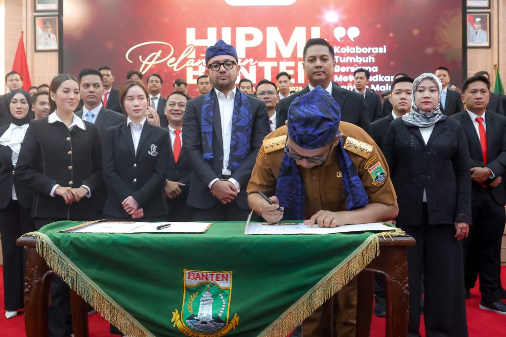 Kabar5.id, Kota Serang, Banten – Gubernur Banten Andra Soni menegaskan peran penting pengusaha muda sebagai motor penggerak ekonomi daerah dalam pelantikan pengurus Himpunan Pengusaha Muda Indonesia (HIPMI) Banten periode 2025–2028 di Pendopo Gubernur, KP3B, Curug, Kota Serang, Selasa (30/9/2025). Menurut Andra Soni, HIPMI harus menjadi wadah lahirnya kader-kader pengusaha baru yang konsisten, berdaya saing, dan mampu membawa perubahan.